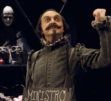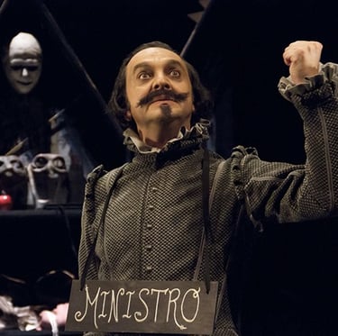 Morfeo ha convertido en teatro los discursos políticos de Quevedo... sin duda una de las apuestas más arriesgadas de la compañía por su cáustica crítica a banqueros y ministros de la época del autor, en fiero paralelismo con la nuestra... y demostrando que no ha llovido tanto desde entonces, ahora en el Corral de Comedias de Almagro, primavera 2026